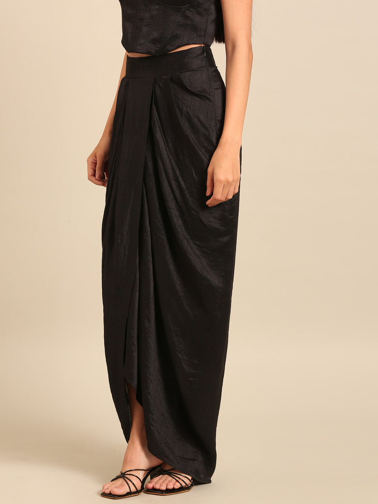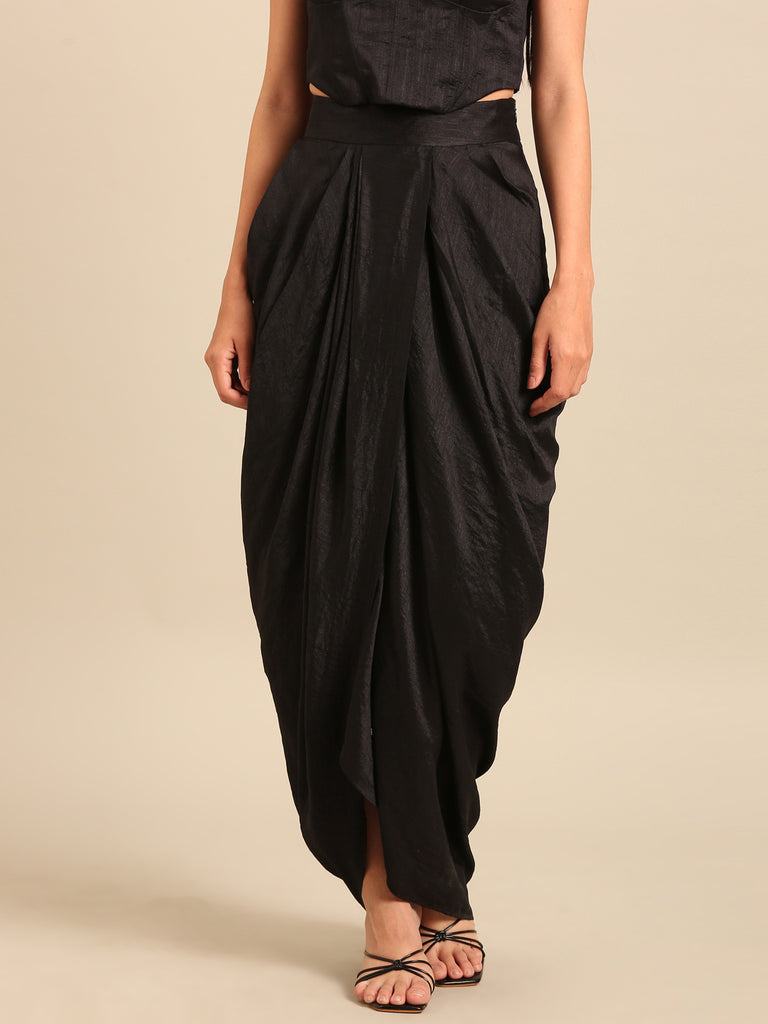 Black Bemberg Silk Dhoti Skirt (Fluid Onyx) - ASSK010